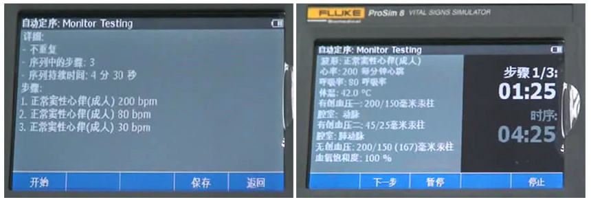 • E) 進(jin)行自動(dòng)化步驟測(ce)試,7箇(ge)生(sheng)命信(xin)号同時模拟,完成(cheng)一(yi)箇(ge)步驟後(hou)按“下一(yi)步”。